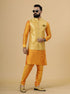 Mustard Kurta Pajama Set with Yellow Banarasi Silk Half Jodhpuri Jacket - Handcrafted |Free Personalization |Diwali, Sangeet Party
