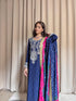 Royal Blue Silk 3-Piece Party Wear with Multi-Color Chunri Dupatta
